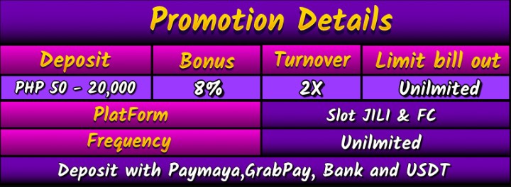 After players apply for promotions. Players can play JILI and FC platform slot games. (Except for these games on the JILI game platform: Dragon Treasure, Candy Baby, and Secret Treasure)