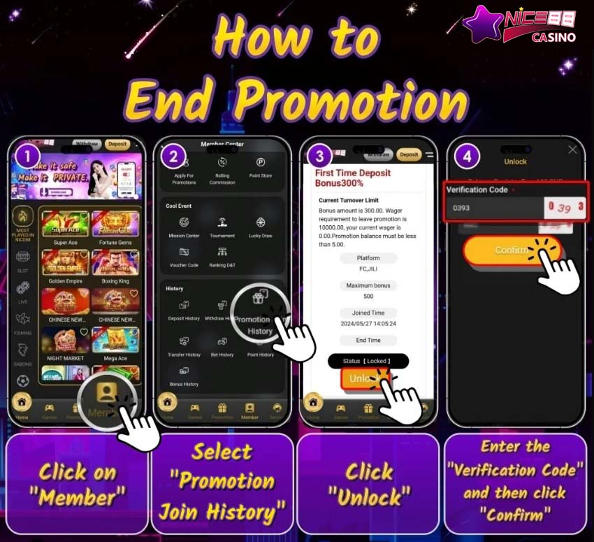 Players can unlock the promotion if they have met the turnover requirements according to the promotion conditions.